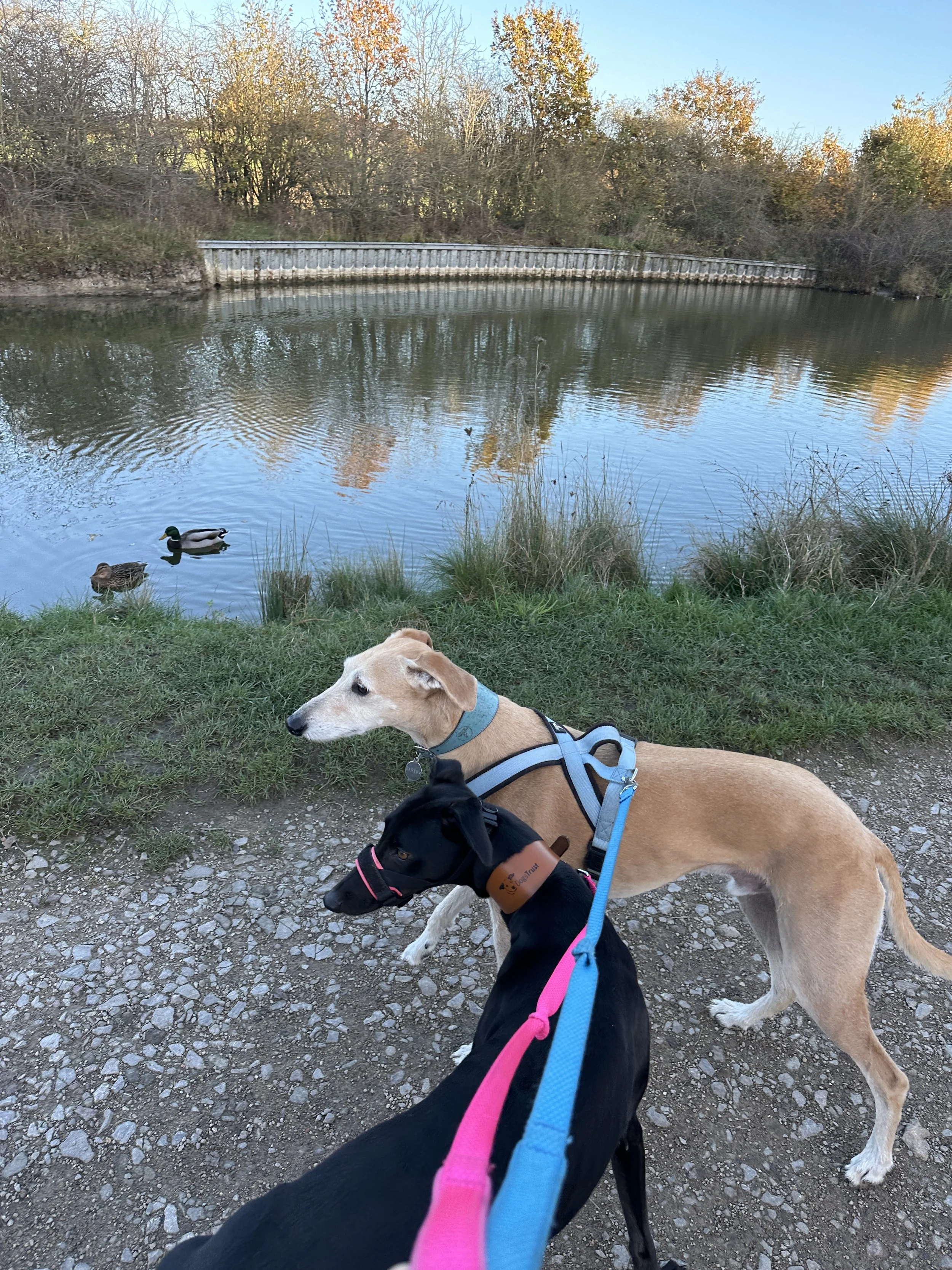 We like to go to new locations often for all walks over 30 minutes to allow the dogs to experience different places, new smells, mental stimulation as well as building their confidence and adaptability.